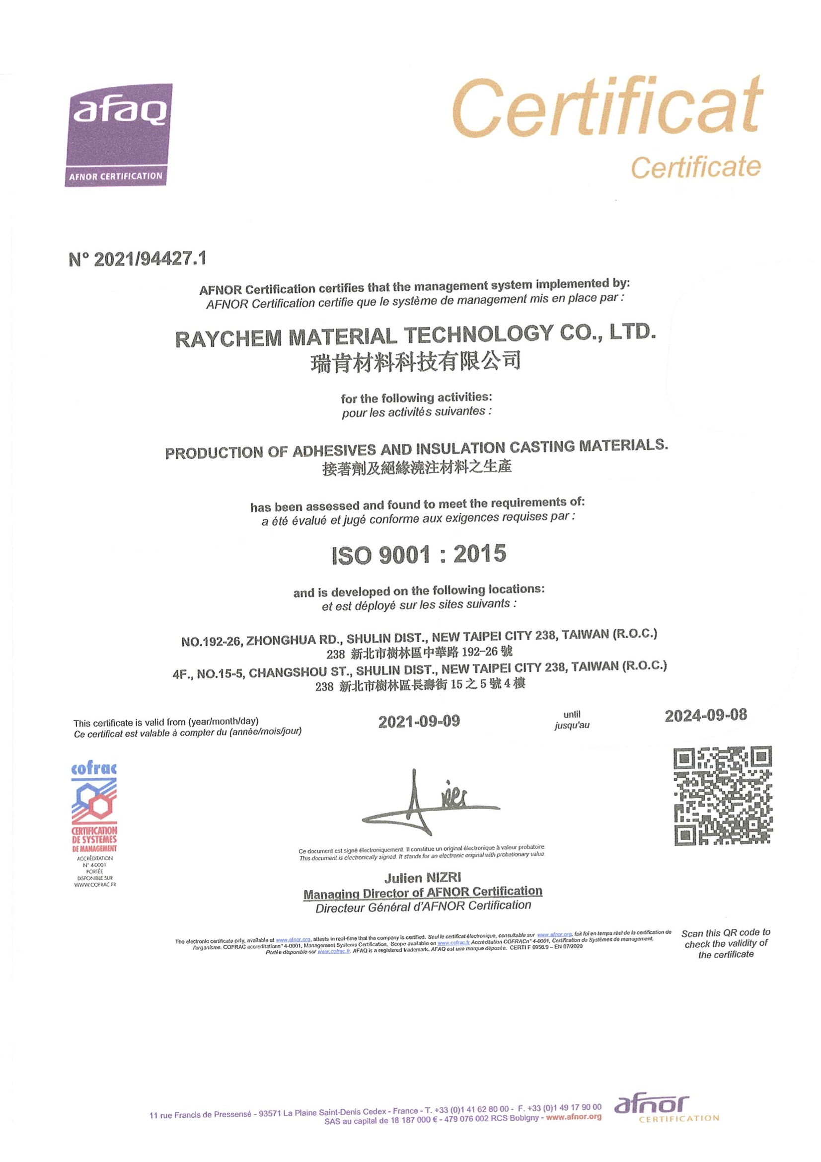 瑞肯材料科技有限公司於2011年設立,為ISO9001認證公司,主要以環氧樹脂配方產品及紫外線固化樹脂之生產及銷售為核心業務,產品之主要應用為工業用接著劑、電氣絕緣澆注材料、電子灌封材料及光電材料等。